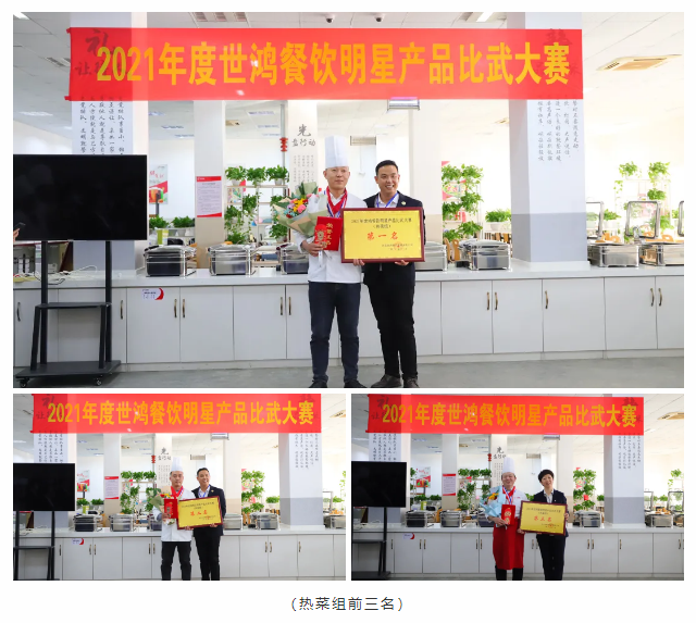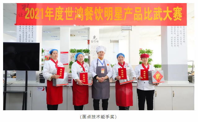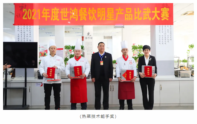 厨艺比赛分为热菜组和面点组两项比赛,每位选手都是精心准备、认真制作,激烈对决,缤纷呈现,将这一年的努力付出和用心态度都带入参赛作品中。经过评委们严谨认真的评审后最终评选出热菜组和面点组的前三名和技术能手奖。颁奖环节是最令人激动的环节,每一位获奖者由颁奖嘉宾用鲜花邀请至主席台,现场尽是大家热情的祝贺和掌声,充满仪式感的颁奖环节令世鸿的家人们开心而感动。大赛是对各项目厨艺基本功的检验,同时利用这个平台可以使大家相互取长补短,厨艺技能得以提升。新的一年,虎扑体育将紧跟时代步伐,不断推陈出新。做高品质团餐,更好的服务于社会。